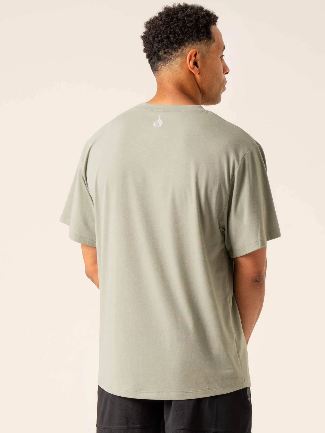 Model is 186cm tall, he usually wears a size M/L and is wearing a size L, his chest measures 105cm and his waist measures 90cm. Oversized t-shirt fit Made from a lightweight polyester blend fabric 65% Polyester/35% CottonRecommended for training and lifestyle.