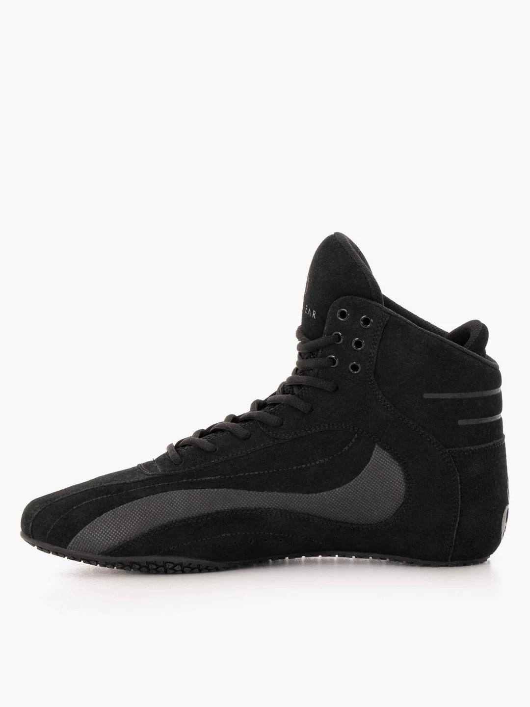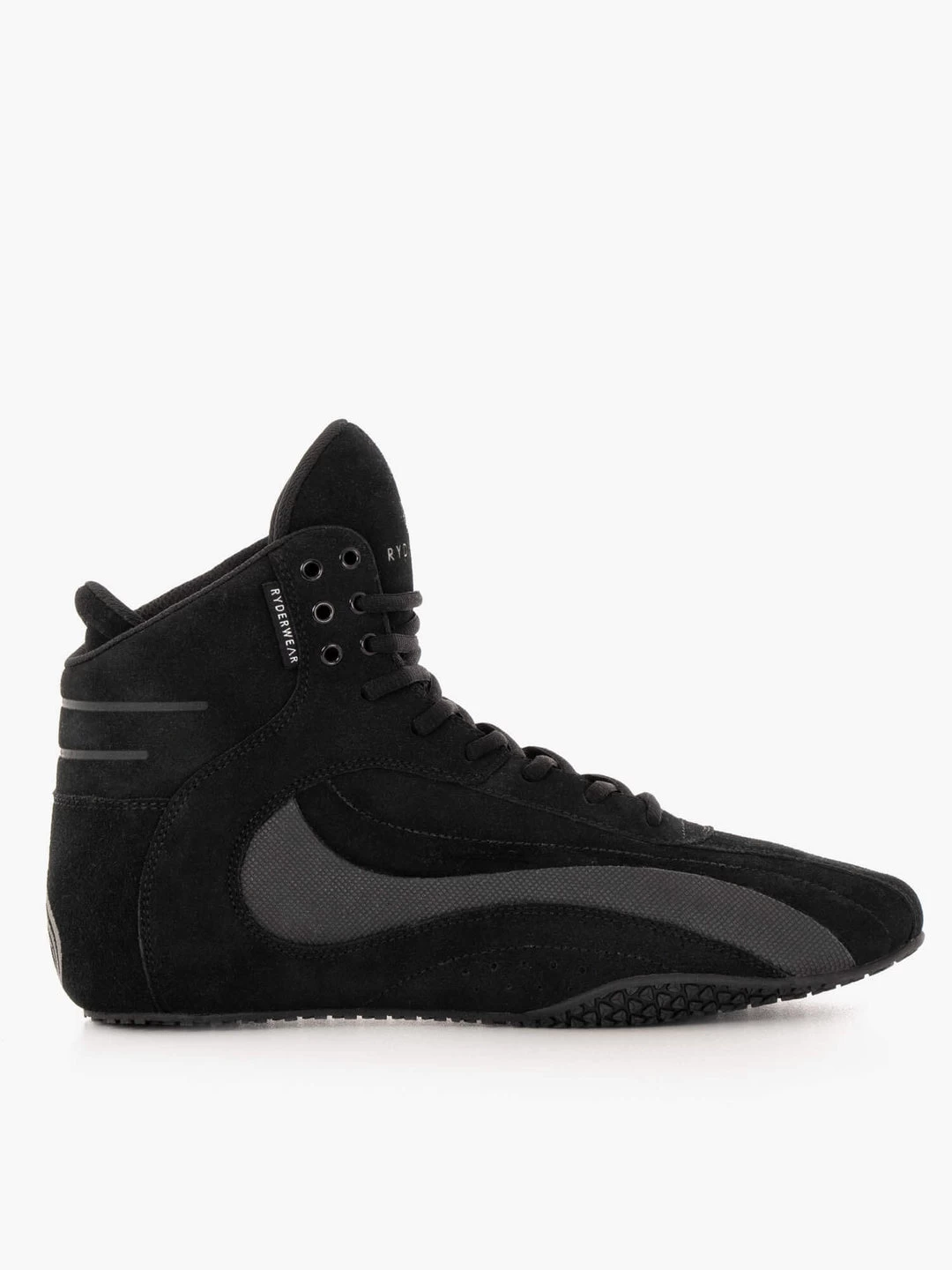 The latest evolution of our iconic, game-changing lifting shoe. The D-Mak Evo is the ultimate workout footwear for the modern lifter, created for bar-bending, earth-shaking lifts. The thin, flatter rubber sole offers that barefoot feel while still providing maximum grip, taking your power and drive to the next level. The premium suede exterior is designed to outlast a lifetime of heavy lifts, while the new padded ankle exterior offers extra ankle stability while you push your limits and conquer PBs. Padded Interior for support and stability Quality Suede Leather Customised Ryderwear Flat Sole Perfect for bodybuilding and powerlifting **These are a men's style shoe and are in men's U.S. sizes. Please refer to the size chart to determine your size.** WHY YOU NEED LIFTING SHOES IN YOUR LOCKER Lifting shoes are made for lifting, which means they’ll have you covered for years of heavy workouts & sweat sessions. While wearing everyday shoes in the squat rack ensures they’ll quickly be destined for the scrapheap, a pair of weightlifting shoes is for life. They might set you back slightly more than your average sneaker but it’s a worthwhile investment, as they should last for a minimum of ten years of lifting, training and squatting. This is all down to the premium, high-quality fabrics used, with the Ryderwear D-Mak created from near-indestructible materials, like a durable canvas, action and suede leather as well as a latex heel cushioning. This all contributes to the longevity of the lifting shoe lifecycle! Upper: 100% Suede Leather. Lining: 100% Polyester. Sole: 100% Polyester.