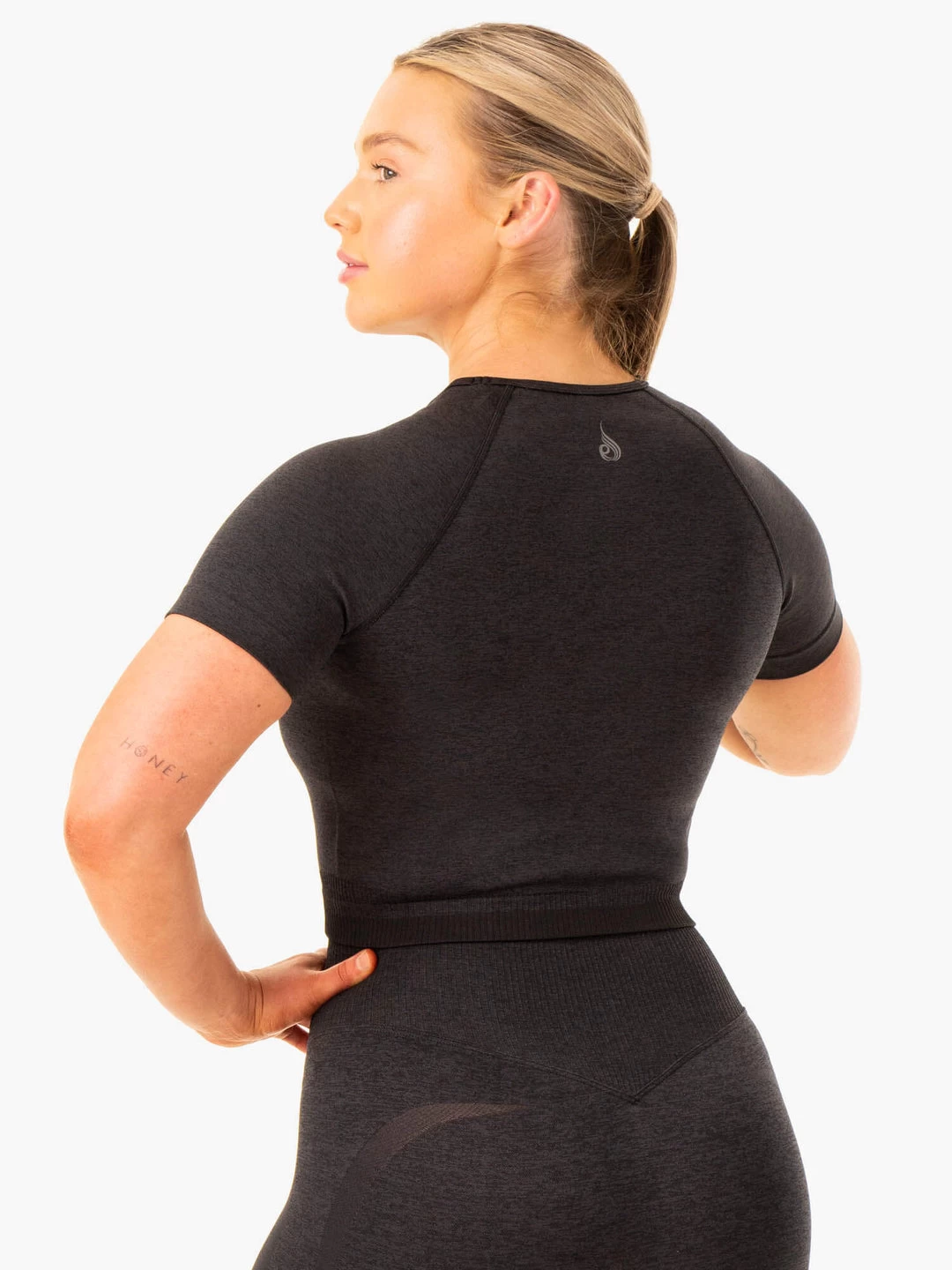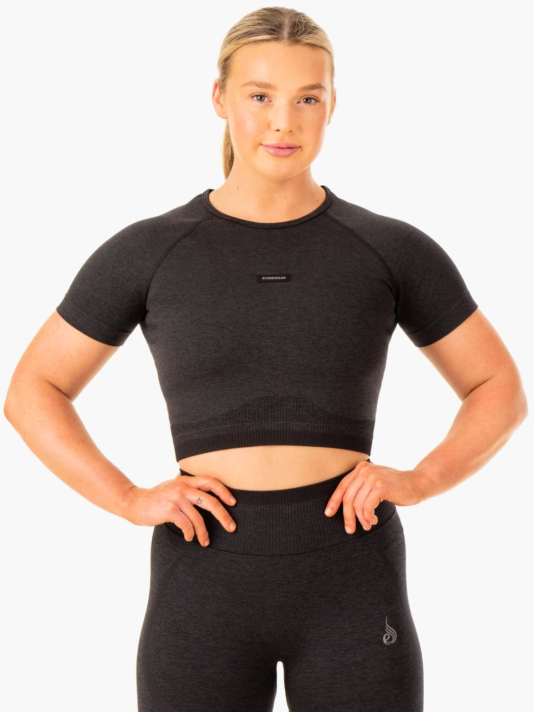 Model is 168cm tall, she usually wears a size S/M and is wearing a size M, her bust measures 93cm and her waist measures 78cm. Slim fit Contours the body Crewneck Ribbed waistband to support you through every rep Four way stretch for freedom of movement Woven Ryderwear badge applied to chest Heat-sealed Ryderwear logo placed at back neckline Recommended for Training. 63% Nylon/24% Polyester/13% Spandex