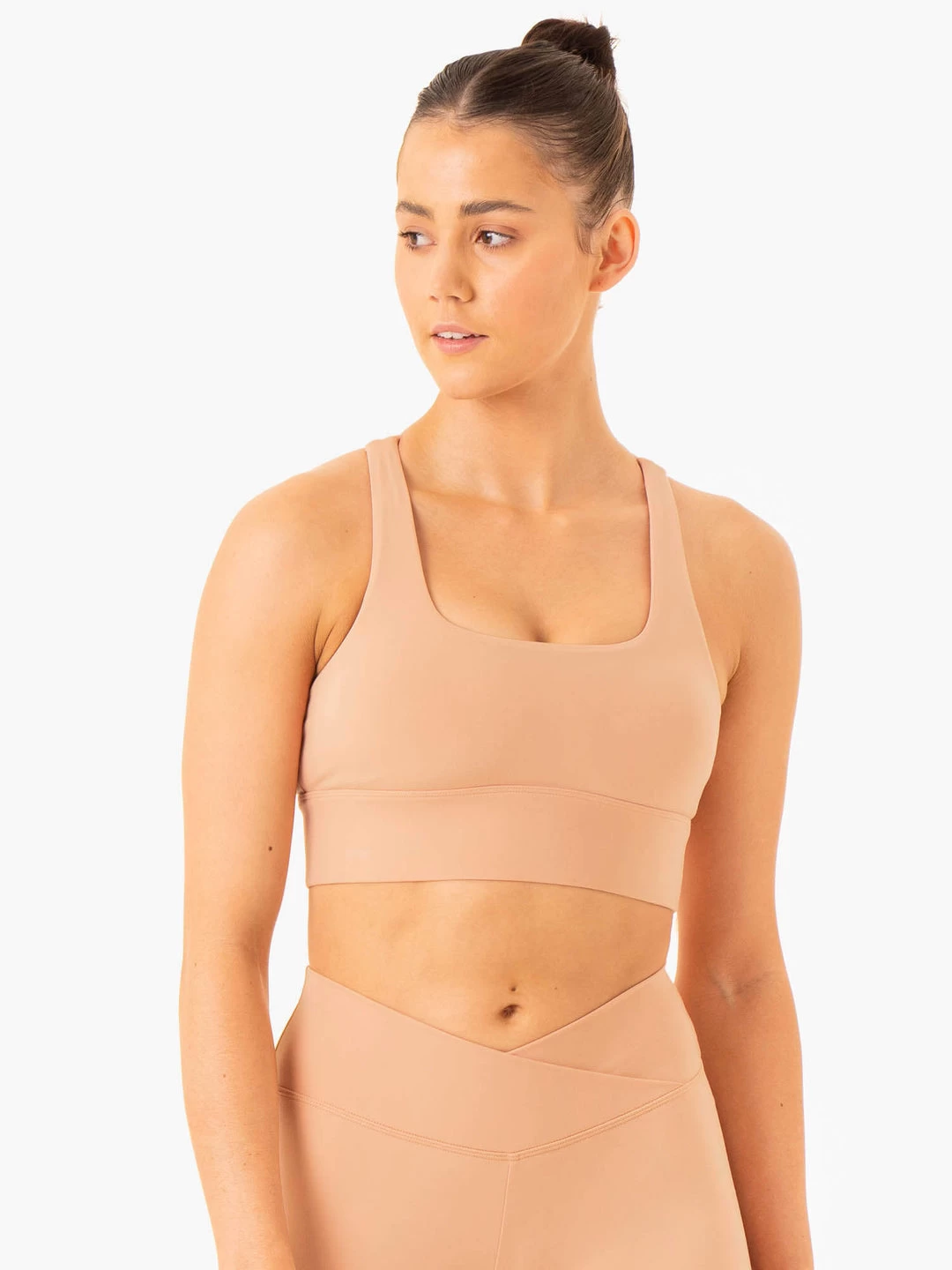 Model is 170cm tall, she usually wears a size S and is wearing a size S, her bust measures 85cm and her waist measures 69cm. Square Neckline Dual straps racer-style back Medium support Elongated waistband to support you through every rep Fully lined with removable padding Four way stretch for freedom of movement Heat-sealed Ryderwear logo placed at back Main: 71% Recycled Polyester/29% Elastane Lining: 91% Nylon/9% Elastane