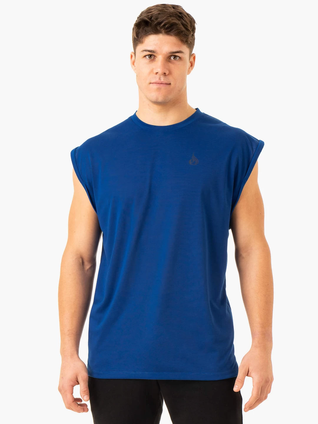 Model is 180cm tall, he usually wears a size M/L and is wearing a size L. His chest measures 99cm and his waist measures 79.5cm. Muscle Tank Boxy fit Crewneck Extended shoulder seam with rolled hem Slightly curved hem with side splits Heat-sealed Ryderwear wordmark across back Lightweight fabric for breathability Recommended for Training100% Polyester