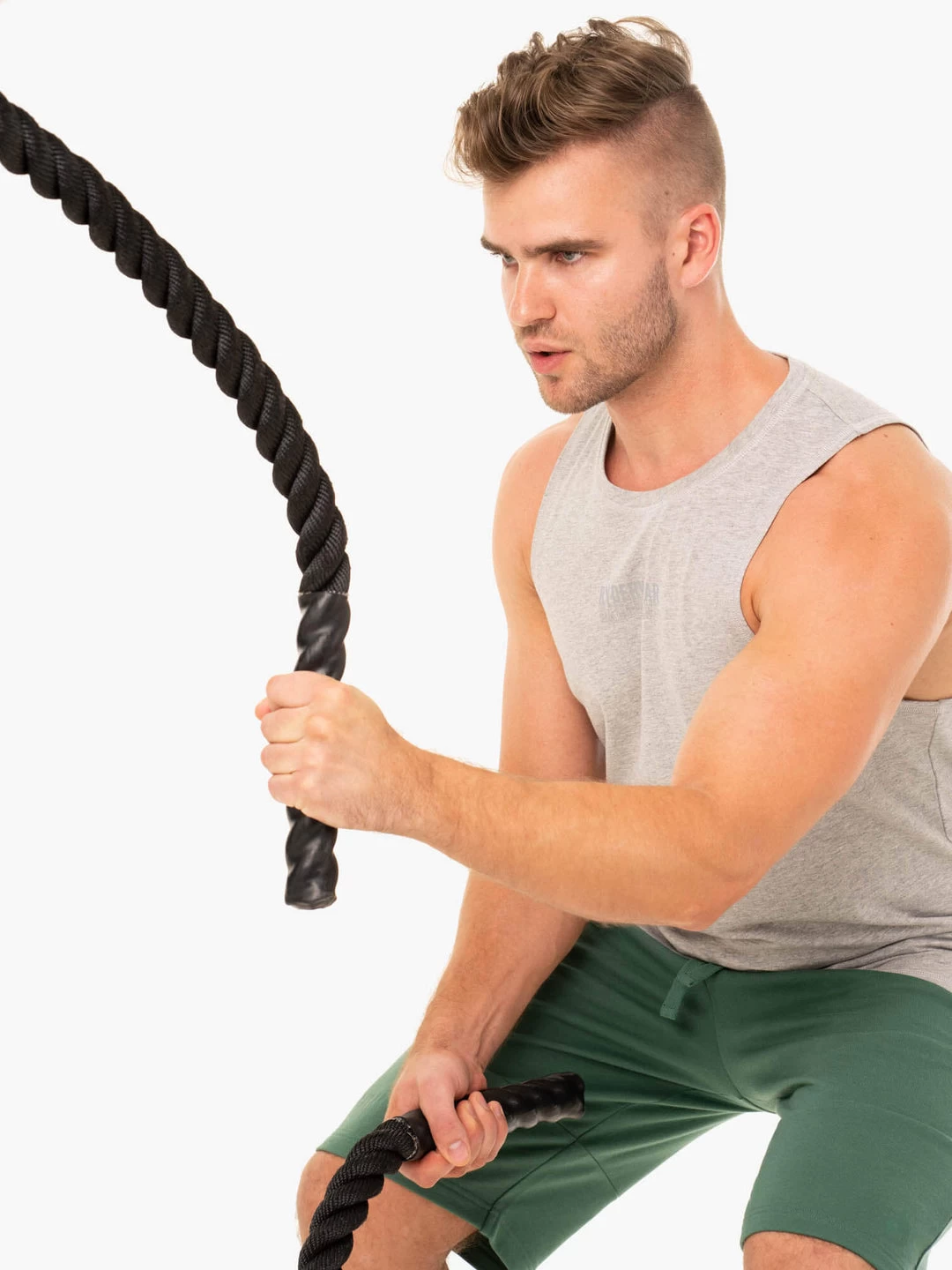 Let go of your limits in this cotton baller tank. With low cut armholes for free movement and a cut that enhances your physique, this baller tank is a training staple you can reach for every workout. Regular fit Straight hem Lightweight fabric for breathability Heat-sealed Ryderwear wordmark to chest Model is 183cm tall. He usually wears a size M to L and is wearing a size M. His chest measures 98cm and his waist measures 87cm. 100% Cotton