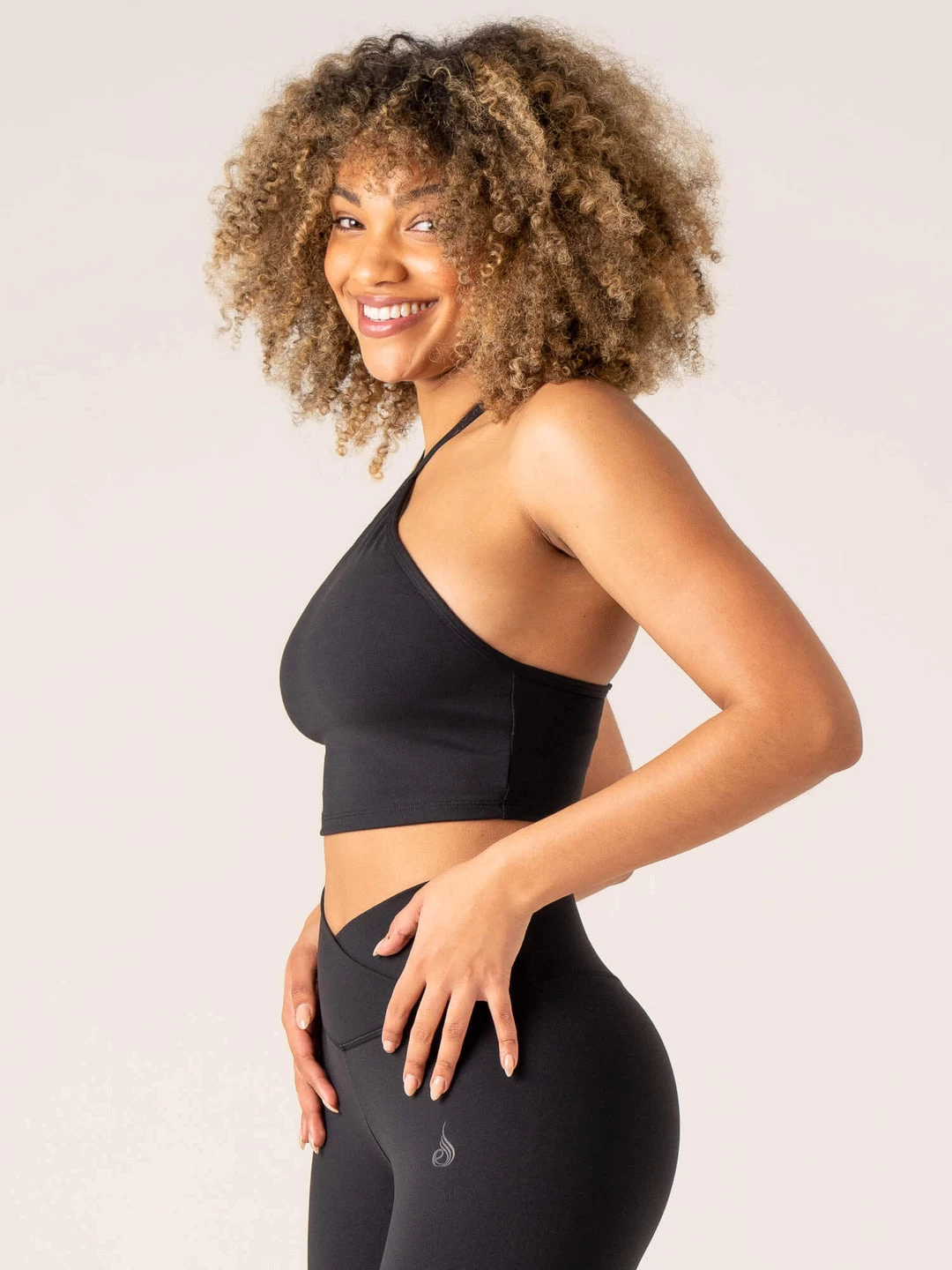 Model is 175cm tall, she usually wears a size S and is wearing a size S, her bust measures 84cm and her waist measures 64cm. Cropped length High neck profile creates halter neck effect Narrow adjustable straps Internal bra Removable padding Made from four-way stretch fabric Main: 83% Nylon/17% ElastaneLining: 90% Polyester/10% ElastaneRecommended for training.
