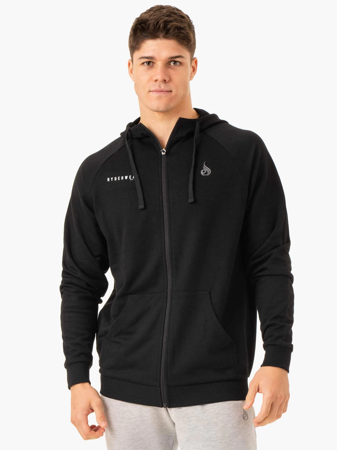 Model is 180cm tall, he usually wears a size M/L and is wearing a size M. His chest measures 99cm and his waist measures 79.5cm. Regular fit Hood with adjustable drawcords Zip opening Front pockets Unbrushed fleece Raw finish across back panel seam Heat-sealed Ryderwear wordmark to chest Rib cuff and body hem Recommended for Training and Lifestyle. Main: 65% Polyester/35% Cotton Rib: 95% Cotton/5% Elastane Contrast: 100% Polyester