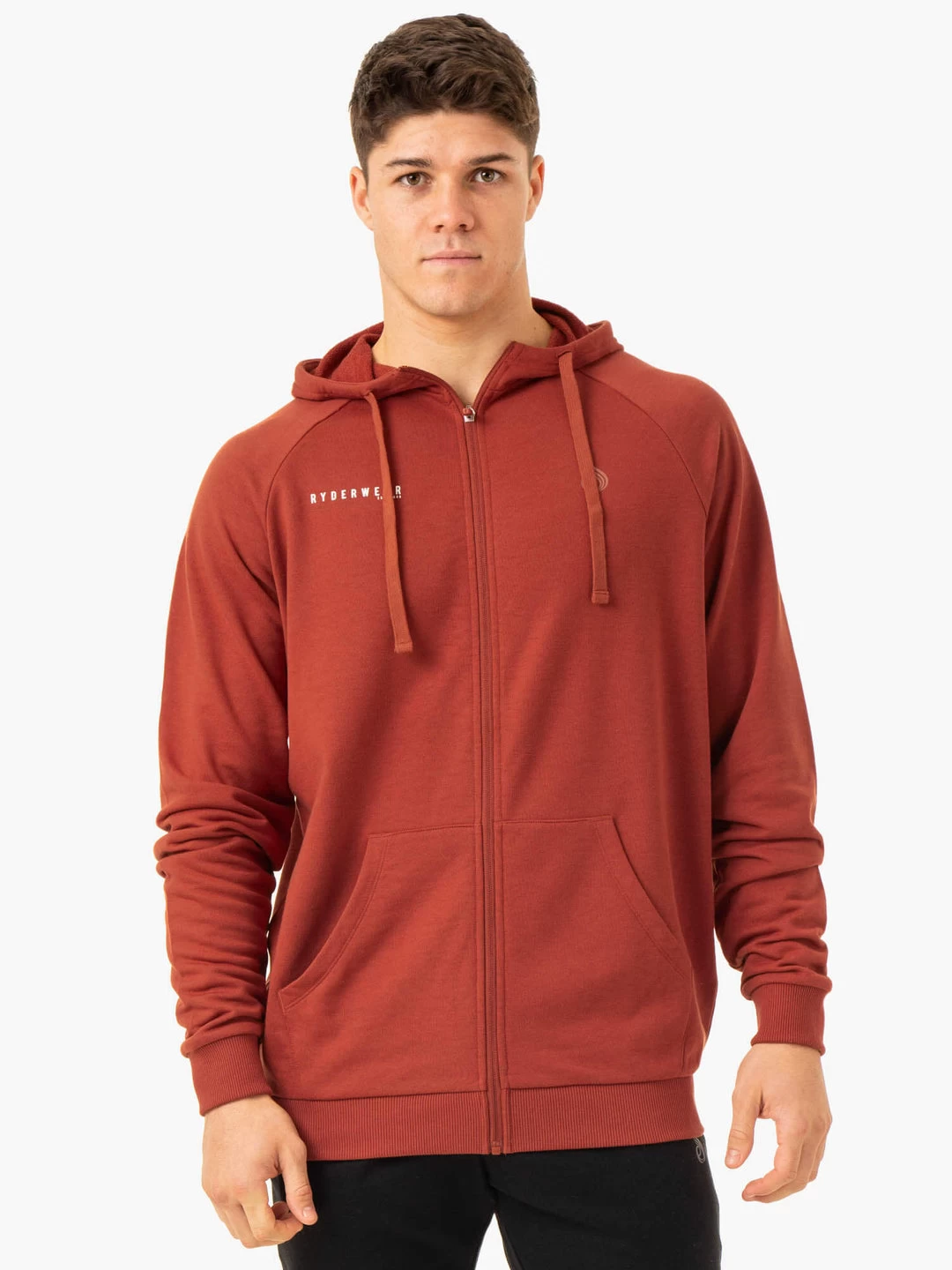 Model is 180cm tall, he usually wears a size M/L and is wearing a size M. His chest measures 99cm and his waist measures 79.5cm. Regular fit Hood with adjustable drawcords Zip opening Front pockets Unbrushed fleece Raw finish across back panel seam Heat-sealed Ryderwear wordmark to chest Rib cuff and body hem Recommended for Training and Lifestyle. Main: 65% Polyester/35% Cotton Rib: 95% Cotton/5% Elastane Contrast: 100% Polyester