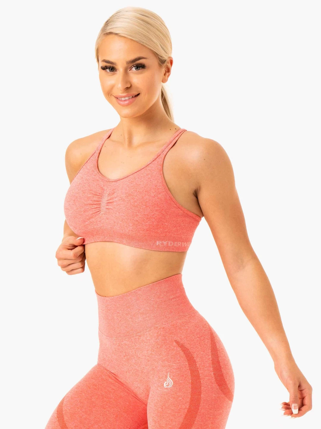 Move your way with complete and unrestricted movement in our Sculpt Seamless Sports Bra. This ultra-comfortable sports bra offers next level support with its ribbed band and double straps. It's super lightweight, fully lined and features a front scrunch to accentuate your curves. Base level support Fully Lined & Removable Padding Four way stretch for freedom of movement Recommended for Training. Model is 158cm tall. She usually wears a size S and is wearing a size S. Her bust measures 88cm and her waist measures 65cm. 52% Nylon/36% Polyester/12% Spandex
