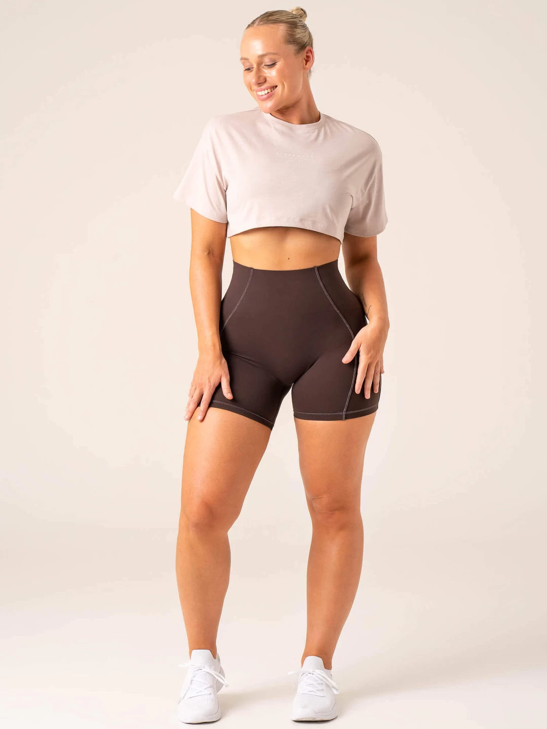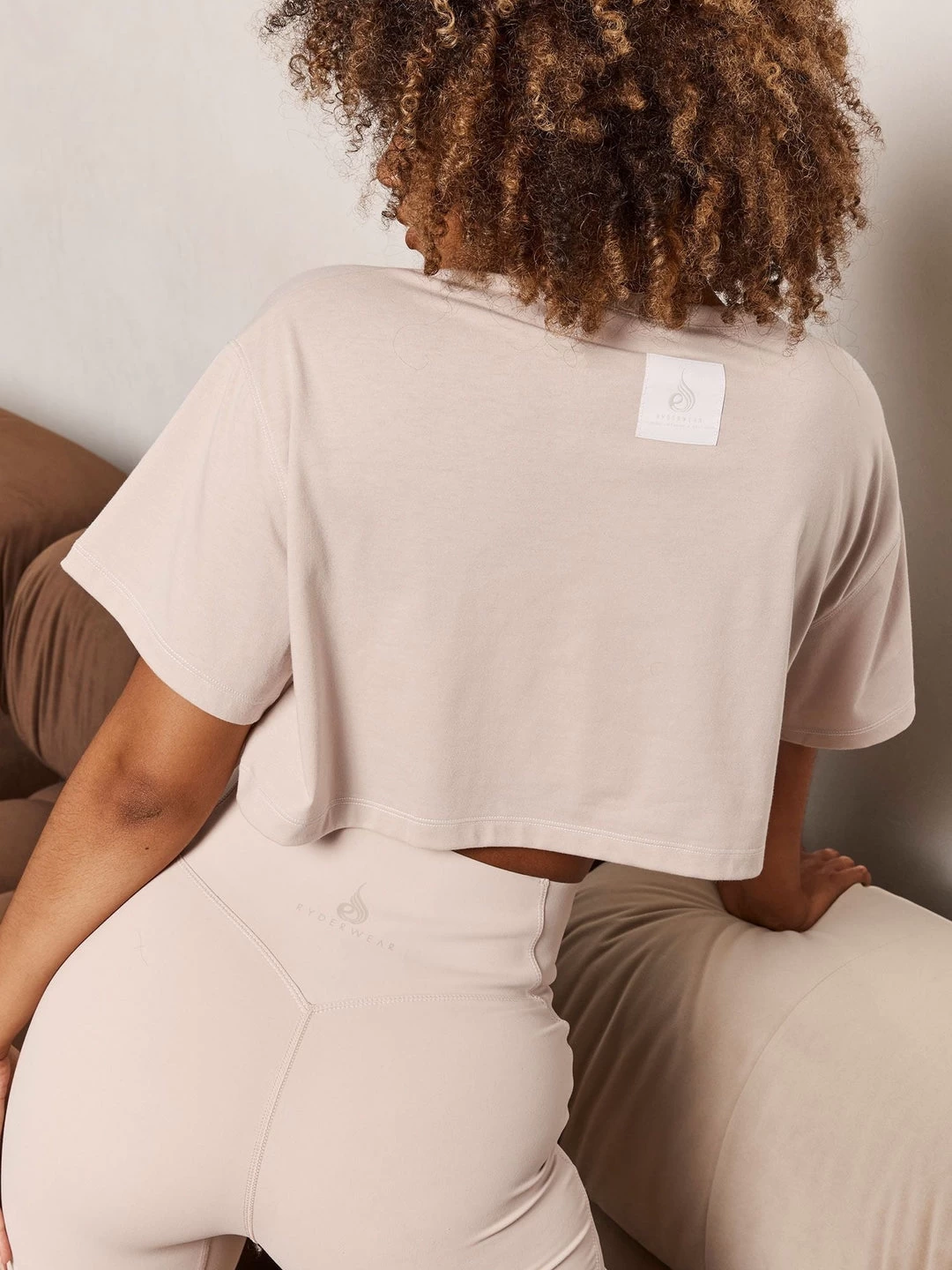Model is 173cm tall. She usually wears a size S and is wearing a size S. Her bust measures 95cm and her waist measures 77cm. Cropped length Flattering rounded neckline Wide waistband for ultimate support Contrast stitch detail Oversized fit Made from a soft polyester blend fabric 65% Polyester/35% CottonRecommended for lifestyle.